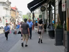 Waterfront area with restaurants, live street performers, entertainment, toy stores, and carousel.