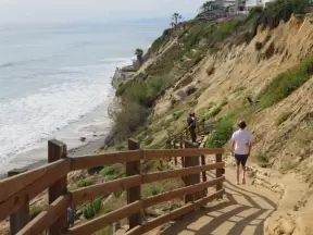 Great spot with views of Pacific Beach and its pretty pier. Stairs down to a beach of huge pebbles that you can't really walk on!