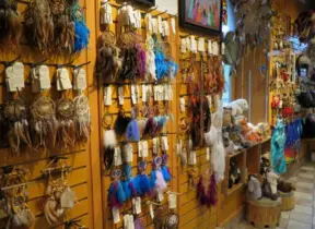 Special area of Balboa Park with adobe buildings, mesquite trees, and brightly colored tiles on the ground. Heart sculpture, and SD Gem Museum. Plus, the wonderful carousel!