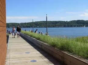 A tiny stretch of boardwalk in a beautiful setting on the estuary, with a coffee shop with a sunny patio facing the water, and cute cafes where you can relax.