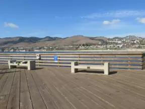 A pretty beachside town, with a wooden pier and wide windy beach with perfect views of Morro Rock, and colorful houses with gardens, backed by gently-sloping hills.
