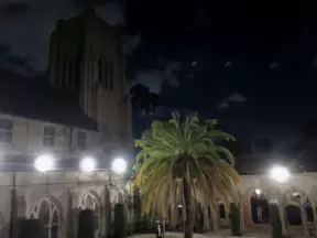 Gorgeous Gothic architecture, impressive chapel, and cute patios under leafy trees.