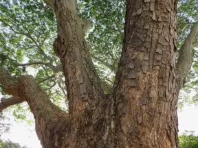 Hilly, sunny campus with tall, impressive trees and green lawns. A hands-on learning university.