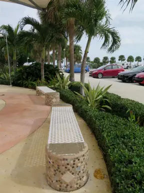 A happening spot with a sunken amphitheater by the water where kids can run in a splash pad and fountains are lit up at night. BurgerFi, Subculture Coffee, and a few restaurants.
