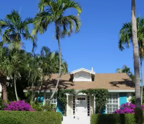 Walk past mansions in the shade of pine and palm trees on Palm Beach Island.