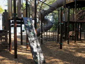 Imaginative ship playground, awesome rope climbing structure, stream, flowers, trees, and walk to lighthouse.