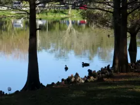 People come after work to walk around the lake, under the trees, enjoying the birds, turtles, and squirrels.