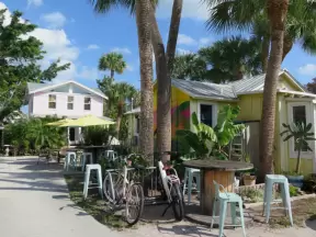 Ultra colorful resort with palm trees galore, live music by the pool, hotel rooms plus cottages, and shopping center.