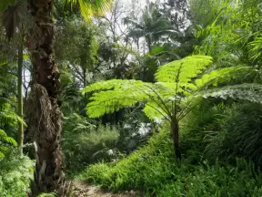 Enjoy a walk through tropical gardens next to a bubbling brook, and then a rest in a shady picnic area with a playground.