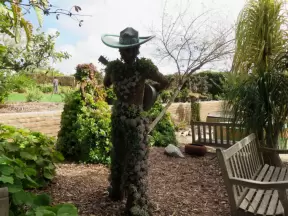 Botanical garden on top of a hill with views all around, cactus garden, colorful wildflowers, and imaginative kid's garden.