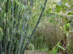 Beautiful park with paved walking trail through bamboo forest and past gorgeous tropical fruit trees.