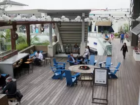 Historic main strip that looks dowdy from a distance but is actually very nice up close! Incredible waterfront stage and boardwalk!