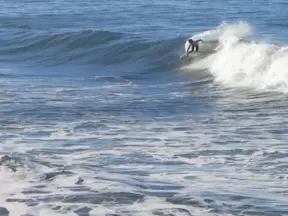 A walk along a clifftop to a popular surfing area with gorgeous sand dunes and exotic plants.