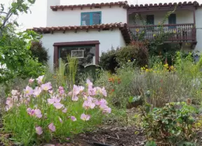Lovely neighborhood walk past sweet houses and gardens, near fragrant hills with eucalyptus and wildflowers, plus a playground and lawn.