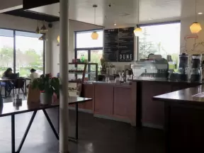 Cute cafes along the main road, in a strip mall and also in a public market.