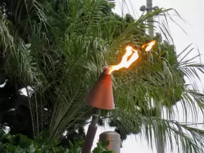 Whitest white sand, clear sparkling water, spacious green lawns with large shade trees, tropical flowers, a wide half-mile boardwalk, and a huge park full of tropical plants.