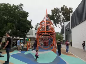 Gorgeous outdoor mall near UC San Diego, with lots of public spaces, cafes, and even a huge outdoor climby for kids.