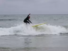An amazing place to watch surfers ride the waves close up and in the shade, at that!