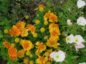 Fairly plain garden with some flowers, herbs, giant chess set, and sectioned off walkways for kids to run around.