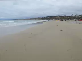 Beach with boardwalk, playground, magical mansion, and kayak rentals to kayak to sea caves, plus cafes nearby.