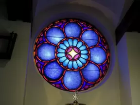 Beautiful, modern cathedral with colorful statues, the twelve stations of the cross, bright stained glass, light-filled rotunda, and amazing organ.