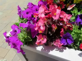 Historic buildings, sunny quad where students hang out, flowers and old trees, and fun student center area.