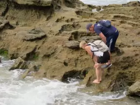 Tide pools with lots of treasures- sea sponges, crab legs, speckled rocks, massive kelp bulbs...