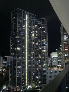 Fantastic, wide running path for 1.5 miles, along the river on the mainland, over the bridge, and all around Brickell Key. Very dense city atmosphere.