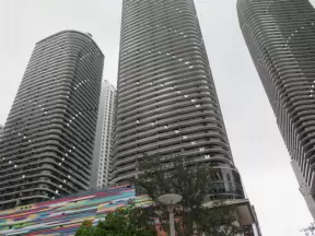 Outdoor mall in downtown Miami's city streets, with colorful decorations.