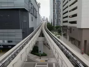 Fantastic, wide running path for 1.5 miles, along the river on the mainland, over the bridge, and all around Brickell Key. Very dense city atmosphere.