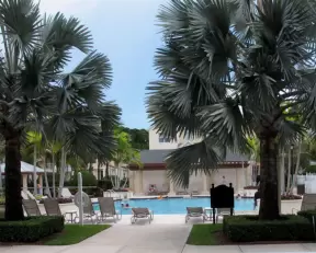 A tropical wonderland of palms, ferns, bromeliads, fountains, sculptures, rocks, ironwork gates, and pergolas, with the delightful scent of flowers filling the air.