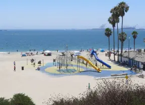 Mission Beach is a happening place! Soft sandy beach, boardwalk, restaurants, amusement park, wave pool, lagoon, and playgrounds.