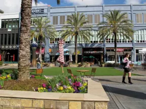 Gorgeous outdoor mall near UC San Diego, with lots of public spaces, cafes, and even a huge outdoor climby for kids.