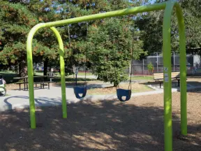 Peaceful neighborhood park with swings, baby swings, and fairly large climbing structure.