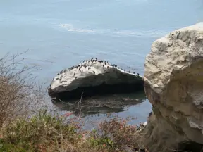 One-mile stunning walk with sweeping views of the coastline, sea stacks of all shapes, pelicans, coves, glistening water, flowers hanging off cliff faces.