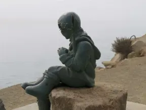 Cement ship playground with logs to climb, seal, dolphin, whale's tail and giant octopus sculptures, picnic tables, and an amazing view of Morro Rock and the inlet.