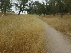 Shady 1.5 mile loop trail that winds gradually up a hill, with good views to the next hill, and awesome spooky oak forest with lichen, Spanish moss (actually lace lichen), and yellow grasses.
