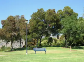 A lush park with rolling hills to run on, one-mile loop walking path, and basketball and sand volleyball courts. Currently has a crime problem.