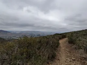 Eucalyptus and cactus forest, then amazing views over the high school toward the morros! After, a difficult, steep, rocky climb with gorgeous views of mountains and distant sea. Also called Bowden Ranch Hike.