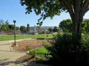 Walking paths, plus pretty park with picnic spot on hill under trees, popular pickleball courts, playground, mountain views, field for dogs, tennis courts, and basketball court.