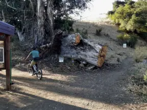 Short 0.3 mile downhill trail past eucalyptus forest to rocky shale coastline with tide pools. Flooded most of the time, with stepping stones over mud.