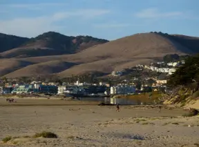 A pretty beachside town, with a wooden pier and wide windy beach with perfect views of Morro Rock, and colorful houses with gardens, backed by gently-sloping hills.