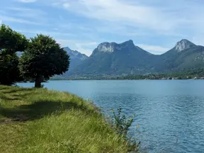23 mile loop bike path around the entire blue-green lake, with stunning mountain views! Most of it is dedicated (without cars).