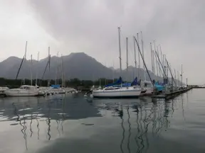 At the far end of the waterfront path, there is a large park for picnics and a marina where people do water sports.