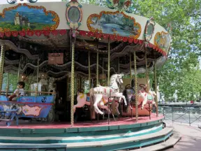 Gorgeous canal with clear water, docks where people dip their toes in, lover's bridge, and carousel.