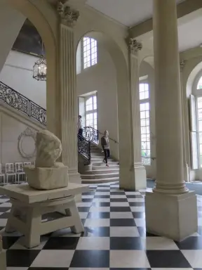 Beautiful sculptures about human bonds (mother and child, lovers) in an 18th-century elegant mansion.