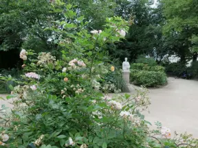 Magical park with lake, hillsides with little daisies, rose garden, and hidden walkways.
