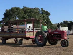 12 acre corn maze, tree swing, hay ride, barrel train ride, cozy coupes, sand pit with tractors, pretend cow milking, goats, donkey, chickens, scarecrows, and pumpkins.