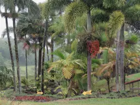 Sunken garden of lush palms from around the world, behind the Hale Ikena dorms.