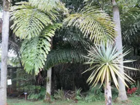 Sunken garden of lush palms from around the world, behind the Hale Ikena dorms.